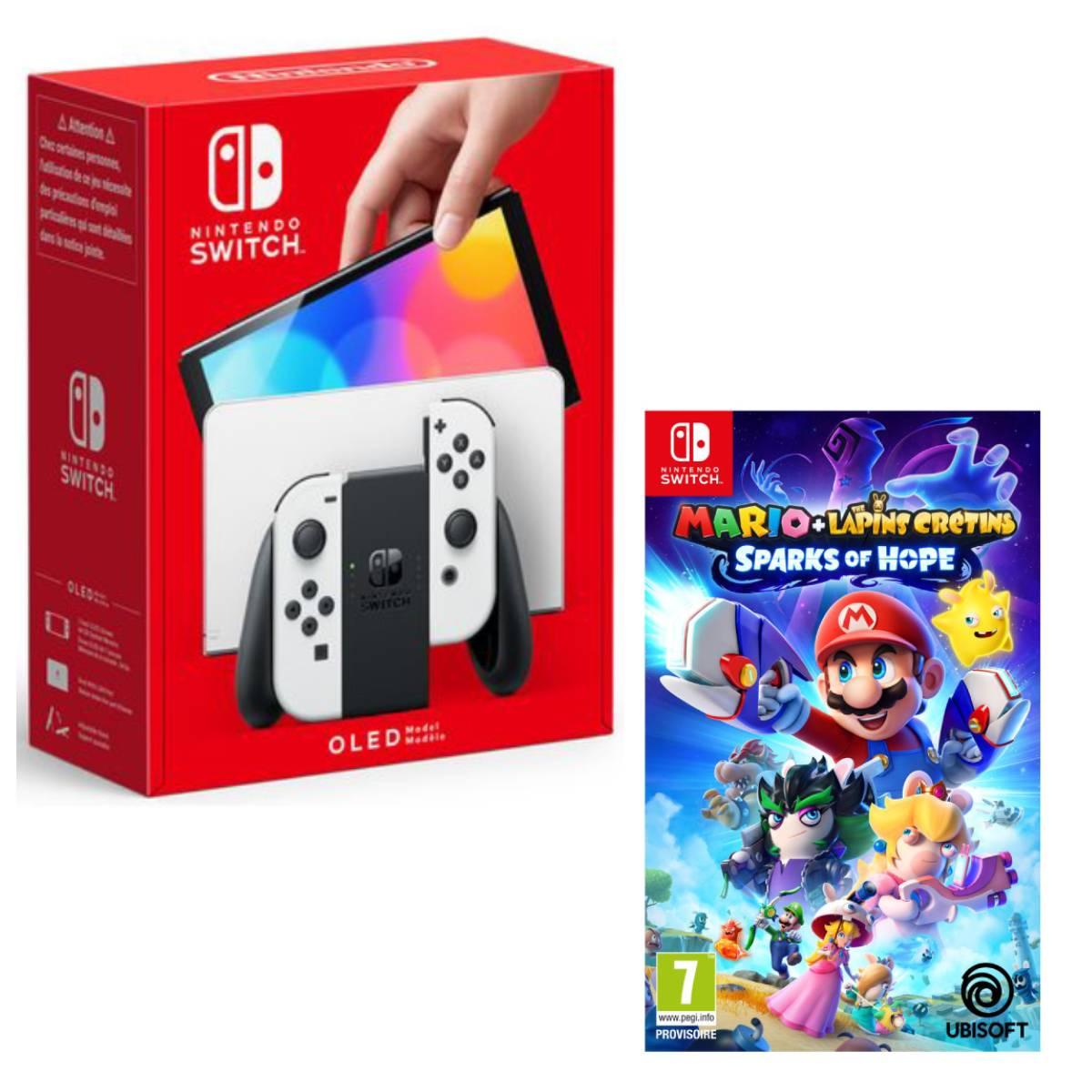 Console Nintendo Switch (modèle OLED) Joy-Con Blanc + Mario + The Lapins Crétins Sparks of Hope Nintendo Switch