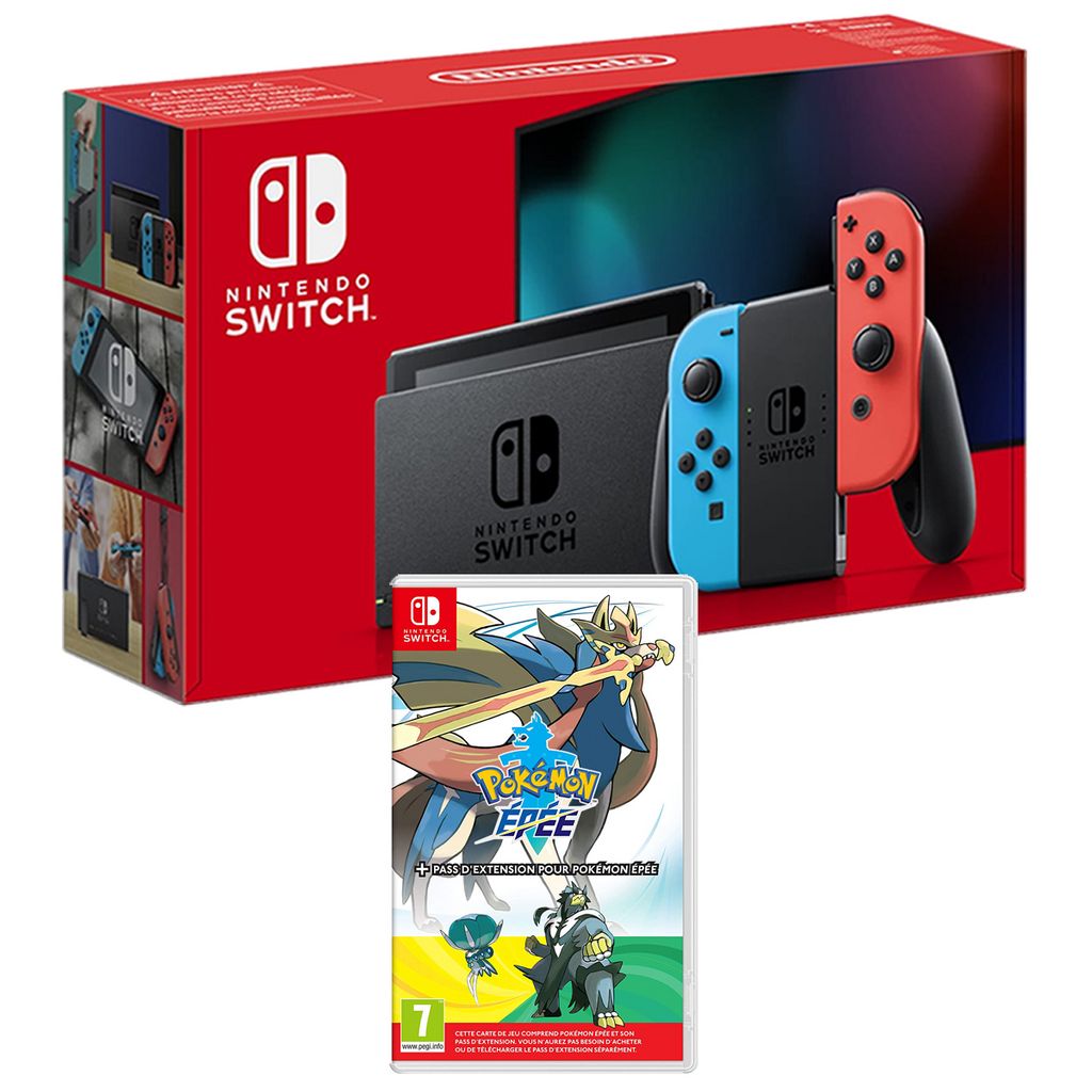 EXCLU WEB Console Nintendo Switch Joy-Con Bleu et Rouge + Pokémon Epée avec Pass Extension Nintendo Switch