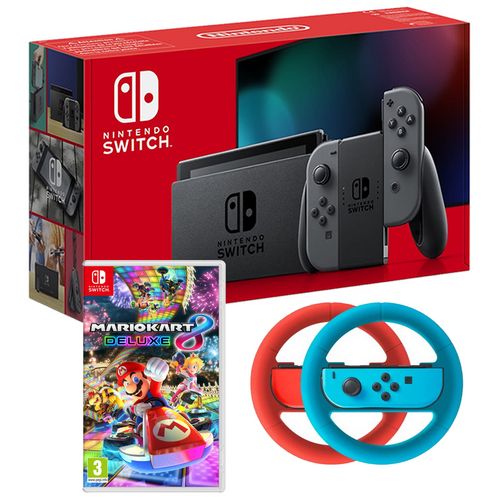 EXCLU WEB Console Nintendo Switch Joy-Con Gris + Mario Kart 8 Deluxe + Pack de deux Volants Joy-Con