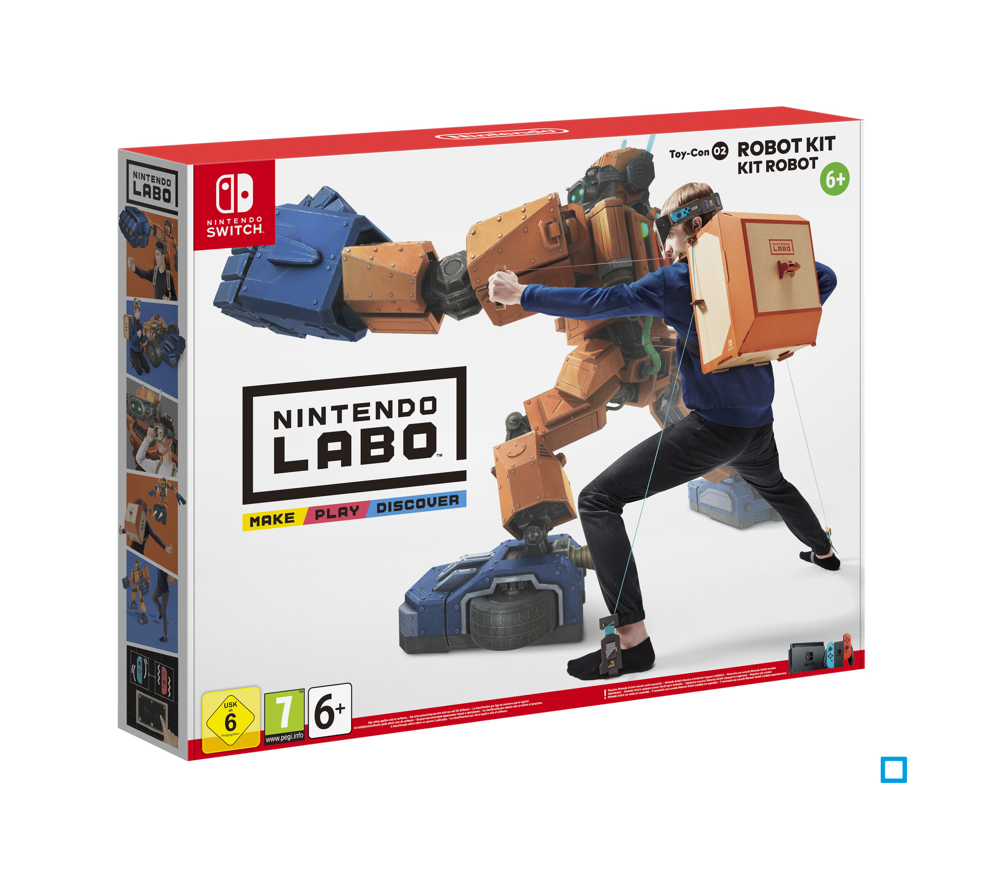Explorez une nouvelle expérience de jeu intéractive grâce au Nintendo Labo sur Nintendo Switch. Découvrez le Toy-Con 02 Robot pour créer votre propre robot. Fabriquez la tenue du robot, enfilez-la et insérez les Joy-Con droit et gauche dans les emplacements prévus dans le sac à dos et le viseur.