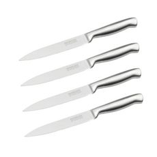 Optez pour ce lot de 4 couteaux de cuisine universels Nirosta de 24 cm, conçus pour les chefs à domicile. Chaque couteau, fabriqué en acier inoxydable, garantit une découpe précise pour tous vos aliments, des fruits aux viandes. Leur design sobre et élégant s'intègre parfaitement dans toutes les cui