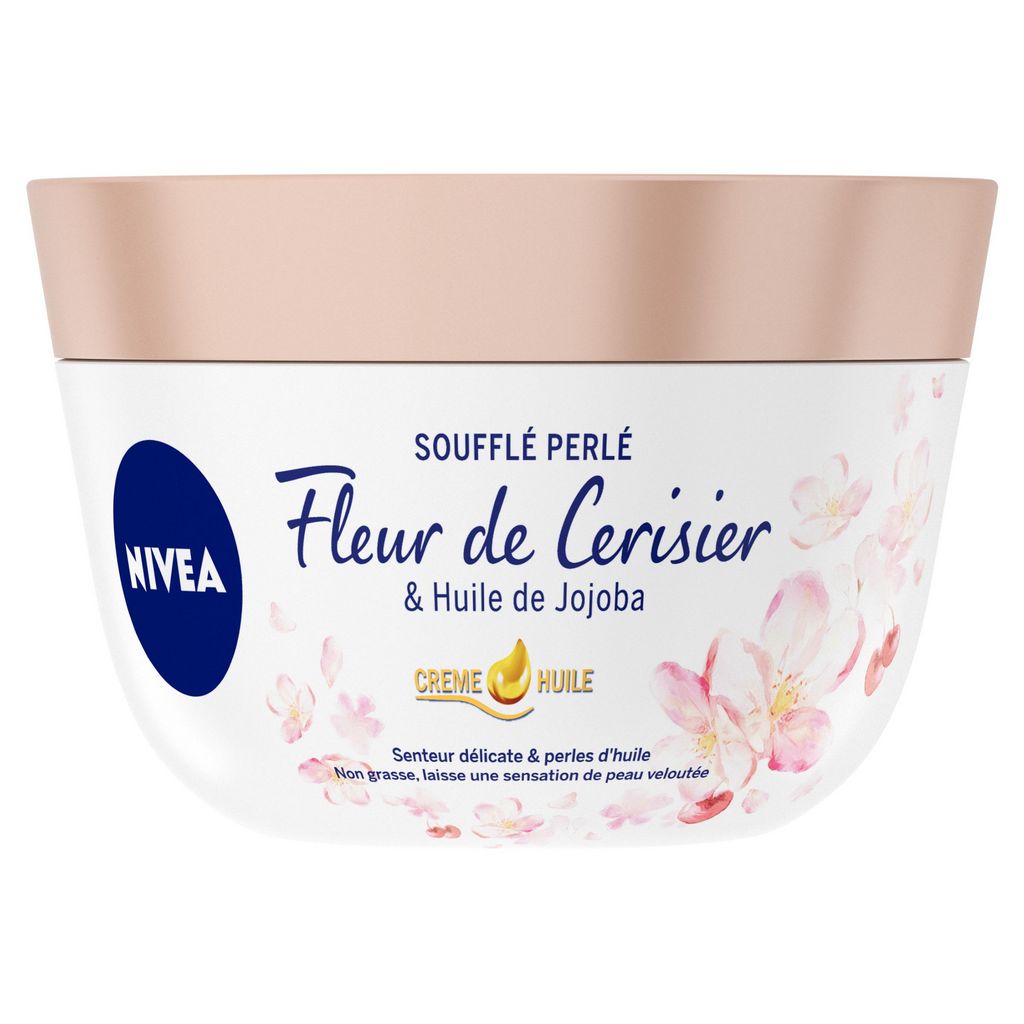 Avec les Baumes Corps Soufflés Perlés, NIVEA introduit une nouvelle texture crème légère et onctueuse avec de fines perles d’huile de jojoba pour hydrater votre peau pendant 24H. Au contact de la peau les fines perles d'huile éclatent et nourrissent la peau. Dès la première application, sa formule au fini non gras s'absorbe rapidement, rend votre peau douce et délicatement parfumée à la Fleur de Cerisier.