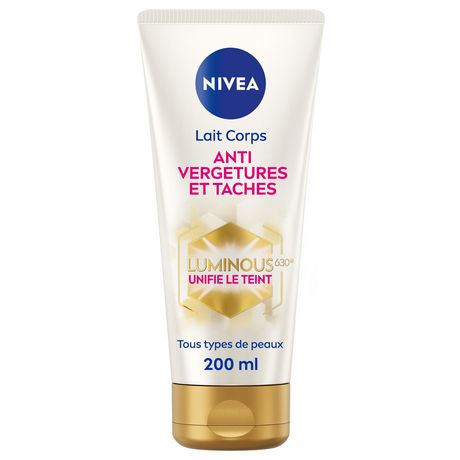Son application régulière réduit visiblement les vergetures, les taches induites par le soleil et taches pigmentaires en 4 semaines (Test consommateurs, 87 participants). NIVEA développe des solutions pour un large éventail de besoins cutanés. Lorsque les vergetures et les taches pigmentaires attirent votre attention, NIVEA s'efforce de vous aider à vous recentrer sur l'ici et le maintenant et à profiter des beaux moments de la vie.