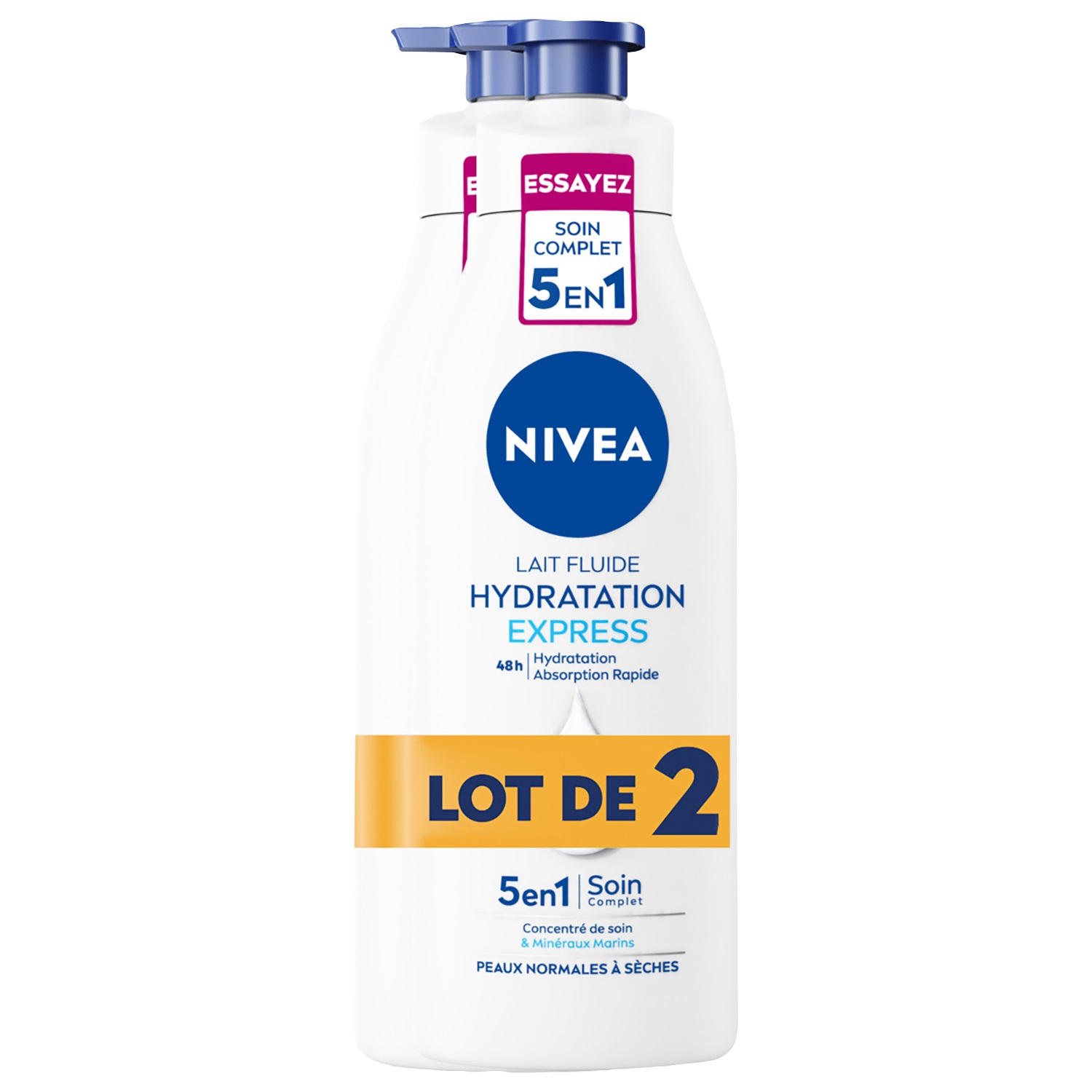 Le Lait Fluide Hydratation Express NIVEA est enrichi en Concentré de Soin & en Minéraux Marins pour hydrater efficacement votre peau pendant 48H. Dès la première utilisation, le lait corps NIVEA a une formule est instantanément absorbée et laisse votre peau plus douce. Pour vous qui ne vous arrêtez jamais, ayez le réflexe 48H D'HYDRATATION INTENSE, EFFET VISIBLE ! Idéal pour les peaux normales à sèches. Le Lait Corps Hydratation Express de NIVEA a une texture douce et pénètre rapidement dans la peau. Découvrez le vite !