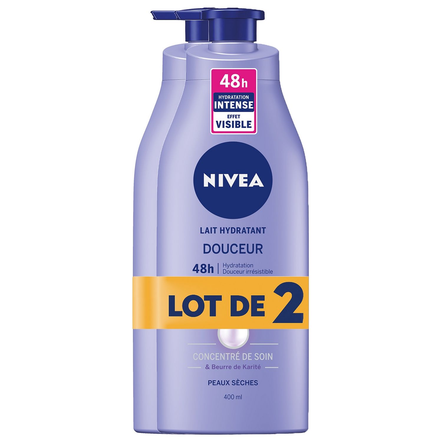 Le Lait Hydratant Douceur est enrichi en Concentré de Soin NIVEA & en Beurre de Karité pour hydrater efficacement la peau pendant 48h. Dès la première application, sa formule ultra fondante laisse votre peau douce et maintient l'hydratation des peaux sèches. Pour vous qui ne vous arrêtez jamais, ayez le réflexe 48H D'HYDRATATION, EFFET VISIBLE !