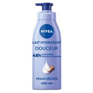 Le Lait Corps NIVEA Hydratant Douceur est enrichi en concentré de soin et en beurre de karité d'origine naturelle pour une action soin 5-en-1. Dès la première application, sa formule ultra fondante pénètre rapidement et apporte du réconfort aux peaux sèches. Le lait corps NIVEA hydratant douceur hydrate efficacement votre peau pendant 48h et la rend plus douce et éclatante de santé. Pour vous qui ne vous arrêtez jamais, ayez le réflexe soin complet 5-en-1. Conseil d'utilisation : appliquez quotidiennement le Lait Corps NIVEA Hydratant Douceur sur tout le corps en insistant sur les zones plus sèches. Format flacon pompe de 400 ml.
