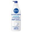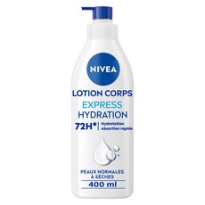 Le Lait Corps NIVEA Hydratation Express est enrichi en concentré de soins et en minéraux marins pour une action soin 5-en-1. Dès la première application, sa formule est instantanément absorbée et laisse votre peau plus douce et éclatante de santé. Le lait Corps NIVEA Hydratation Express hydrate efficacement la peau pendant 48h. Pour vous qui ne vous arrêtez jamais, ayez le réflexe soin complet 5-en-1. Conseil d'utilisation : appliquez quotidiennement le Lait Corps NIVEA Hydratation Express sur tout le corps en insistant sur les zones plus sèches. Format flacon pompe de 400 ml.