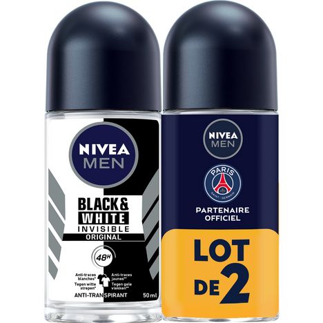 Le déodorant bille anti-transpirant Black & White Original de NIVEA MEN vous garantit 48h de protection contre la transpiration tout en prenant soin de votre peau. Sa formule a été développée pour ne pas laisser de traces blanches sur les vêtements noirs, ni de traces jaunes sur les vêtements blancs. Profitez d'une protection 5 en 1 contre les odeurs, la transpiration, les tâches, les résidus et les irritations. Sans alcool (sans éthanol). Format bille 50 ml. Existe aussi en format spray 200 ml.