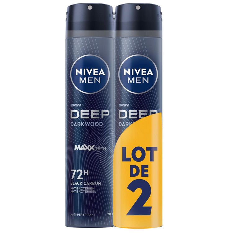 L'anti-transpirant NIVEA MEN Deep Black Carbon offre une protection anti-transpirante efficace de 72 heures qui prend soin de votre peau. Sa formule au Charbon Noir offre une protection puissante contre les bactéries et un parfum boisé longue durée. L'anti-transpirant ne laisse aucun résidu noir visible – pour une sensation de peau sèche et propre. Tolérance cutanée testée sous contrôle dermatologique. Format spray 200 ml. Existe aussi en format bille 50ml. Conseils d’utilisation : vaporisez à 15 cm de l'aisselle et laissez sécher avant de vous habiller.