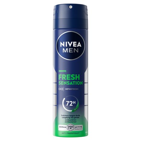 Protection Derma 72h Active Un anti-transpirant fiable au parfum frais et durableNIVEA MEN Fresh Sensation Anti-transpirant avec la formule NIVEA INFINI ∞ FRESH offre une protection contre la transpiration et les odeurs pendant 72 heures.Formule uniq