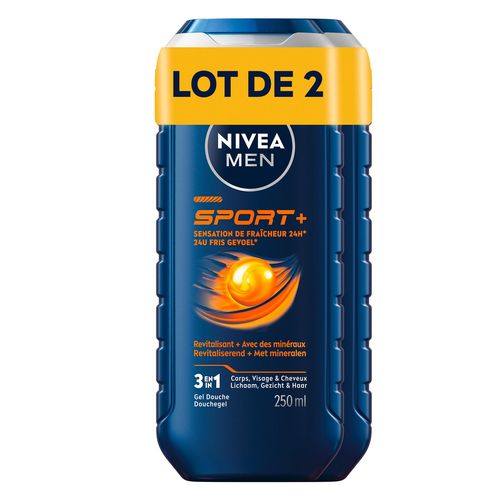 LE GEL DOUCHE 3EN1 HOMME SPORT NIVEA nettoie et revitalise la peau. Son parfum stimulant procure une sensation de fraicheur longue durée, en particulier après l'effort. S'utilise aussi pour le visage et les cheveux. Testé sous contrôle dermatologique.
