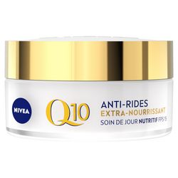 Avec l'utilisation quotidienne du soin jour NIVEA Q10 EXTRA NOURRISSANT, la peau du visage est intensément nourrie, elle parait plus ferme et les rides profondes sont réduites.