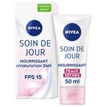 Le Soin de Jour Douceur de NIVEA nourrit intensément la peau et l'hydrate pendant 48h. Il procure une sensation de confort grâce à sa formule avec de l'Huile d'Argan naturelle connue pour ses propriétés nourrissantes & l'Acide Hyaluronique connu pour maintenir l'hydratation. Spécialement conçue pour les peaux sèches, cette crème de jour vous accompagnera dans l'hydratation quotidienne de votre peau. Son SPF15 permet une protection au quotidien des UVA/UVB contre les dommages cutanés et le vieillissement prématuré de la peau induits par le soleil. Sa texture soyeuse fond sur la peau, la laissant intensément hydratée, nourrie et lisse. Nettoyer la peau puis appliquer en massages circulaires jusqu'à pénétration. Tolérance cutanée testée sous contrôle dermatologique.