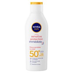 [Cet avis a été recueilli en réponse à une offre.] Le tester,,, c'est l'adopter... Une agréable surprise pour ce lait Nivea Sun Sensitive Protection Immédiate 50+ pour peaux sensibles au soleil.. Au premier rayon de soleil habituellement je rougis très vite,,, et bien avec cette protection Pas un coup de soleil. Le Lait Nivea Sun SENSITIVE PROTECTION Immédiate sera mon compagnon de l'été. Très agréable à appliquer sur le corps, le lait est onctueux,, permettre rapidement,,, ne Colle pas,, et offre une protection instantanément après l'application. Après 5 jours d'exposition au Soleil pas de rougeurs,,, pas de coup de soleil.... Je recommande Nivea Sun SENSITIVE PROTECTION Immédiate peaux sensibles
