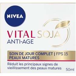 Ce soin anti-âge complet - spécialement développé pour les peaux matures - est enrichi en extrait naturel de Soja qui :