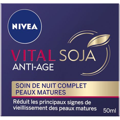 Tous les soirs, après avoir soigneusement démaquillé et nettoyé votre peau, appliquez le soin de nuit anti âge complet NIVEA VITAL SOJA sur le visage, le cou et le décolleté en évitant le contour des yeux