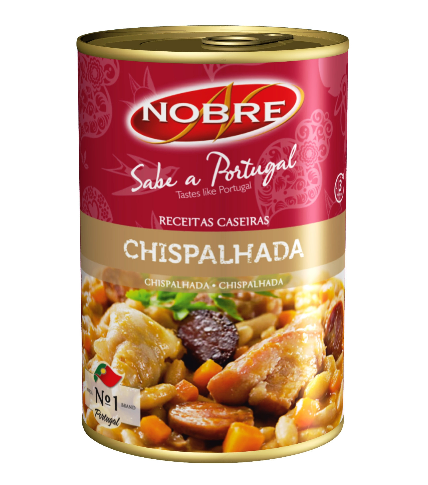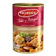 Eau, pied de porc, haricot blanc, carotte, bajoue de porc, saucisson, sel protéines de LAIT, épices, émulsifiants, sucre, conservateurs, boudin, FARINE DE BLE, vin, sel, protéine de SOJA, tomate, oignon, pâte de paprika, saindoux de porc, ail, antioxydants.