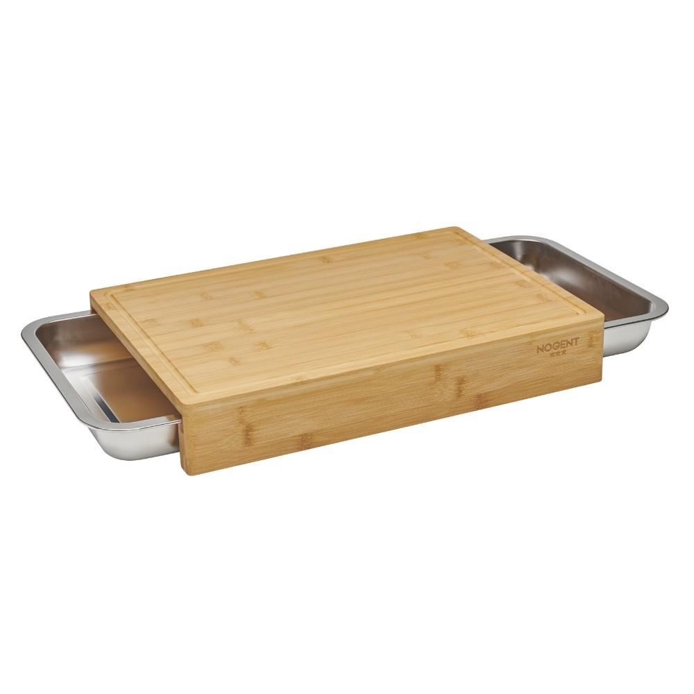 Planche à découper bambou 41x28,5cm + 2 tiroirs inox - 09951g