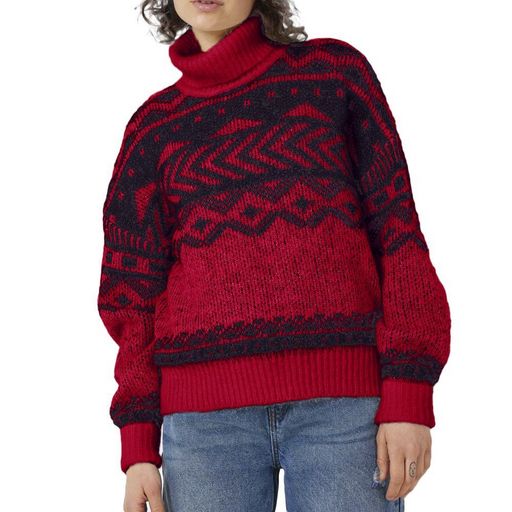 Optez pour le pull de la marque NOISY MAY !Coloris : Rouge/BlancCol rouléTissu impriméManches longuesComposition : 52% polyester recyclé, 25% acrylique, 19% polyester, 4% élasthanne