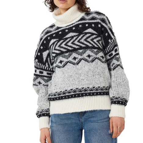 Optez pour le pull de la marque NOISY MAY !Coloris : Noir/Blanc Col roulé Tissu imprimé Manches longues Composition : 52% polyester recyclé, 25% acrylique, 19% polyester, 4% élasthanne