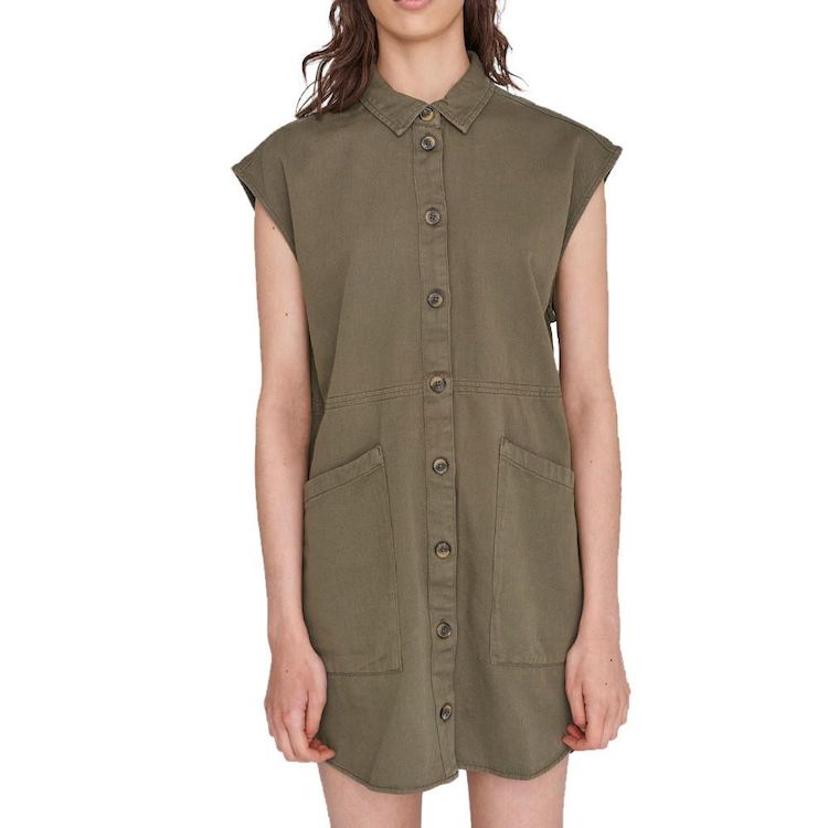 Optez pour la robe femme de la marque Noisy May- Sans manches- 2 poches- Coloris : Kaki- Fermeture à boutons- Composition : 100% coton