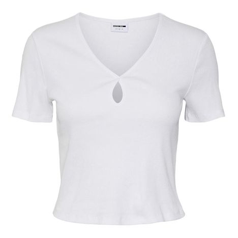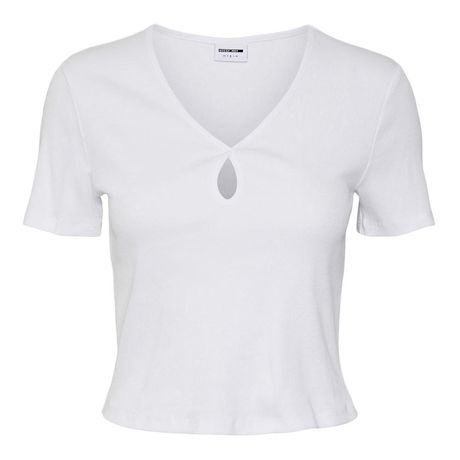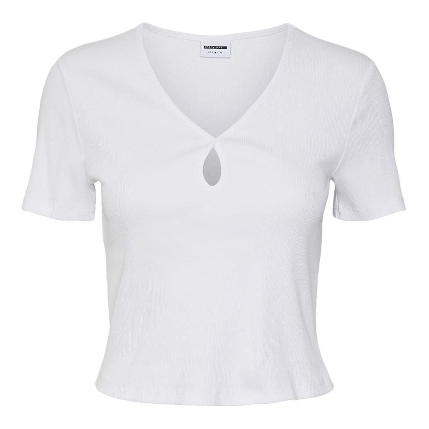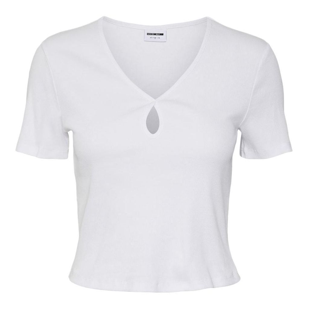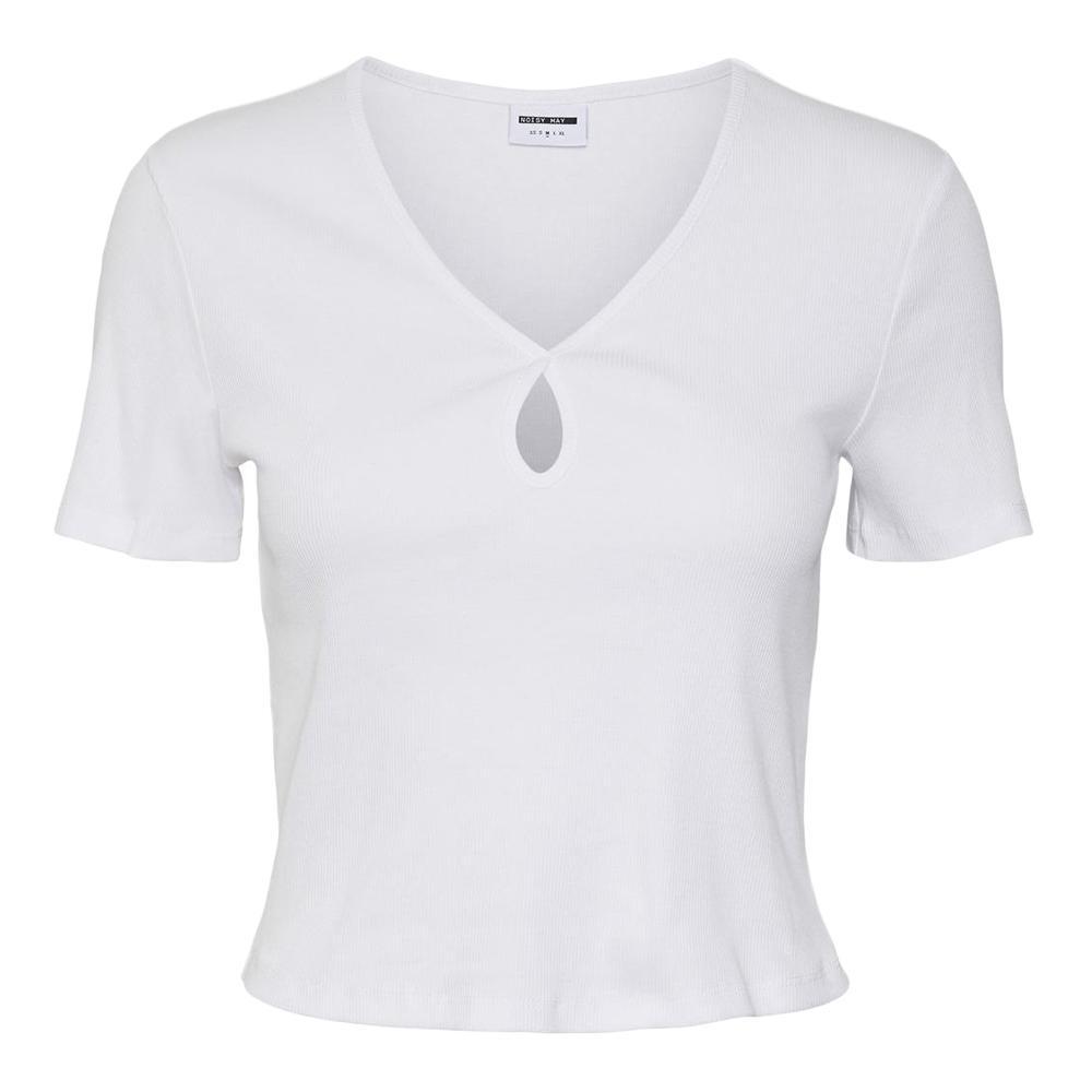 Optez pour ce t-shirt de la marque Noisy MayColoris : Blanc Col VManches courtesComposition : 95% Coton, 5% ÉlasthanneDécoupe décorative sur le devantTissu côteléManches courtesTissu mi-lourd légèrement stretchTissu en coton mélangéCoupe slim