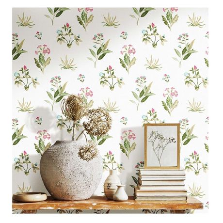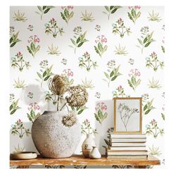- Motif de fleurs de style romantique : ce papier peint intisse durable presente un imprime de fleurs et de plantes blanches et vertes, ajoutant une touche idyllique a votre piece.