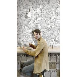 Ce papier peint metallique et gris fait partie de la collection Friends & Coffee Boxes and Locks de la marque Noordwand, qui presente une grande variete de papiers peints avec des impressions graphiques de styles industriel a moderne et dans differentes couleurs. Facile a appliquer : le papier peint