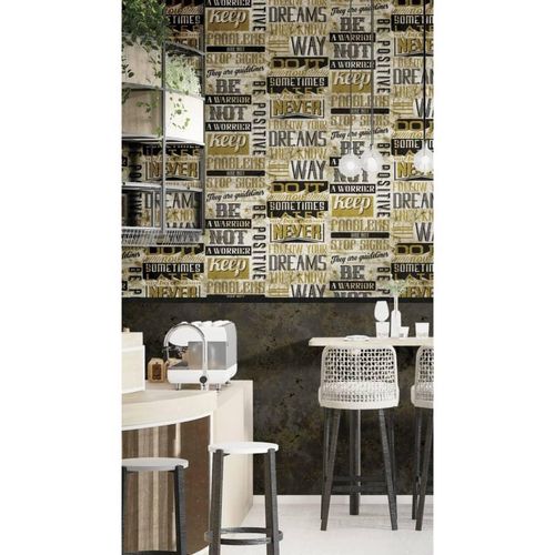 Ce papier peint noir et marron fait partie de la collection Friends & Coffee Marble Concrete de la marque Noordwand, qui presente une grande variete de papiers peints avec des impressions graphiques de styles industriel a moderne et dans differentes couleurs. Facile a appliquer : le papier peint int