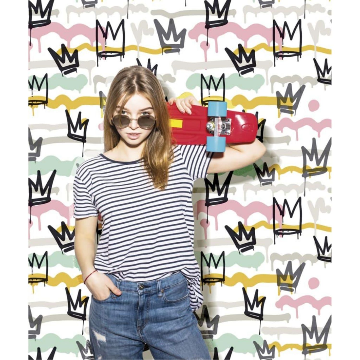 - Style moderne : ce papier peint intisse durable avec graffity et couronnes apporte de l'ambiance moderne a votre piece et la rend plus coloree et amusante.