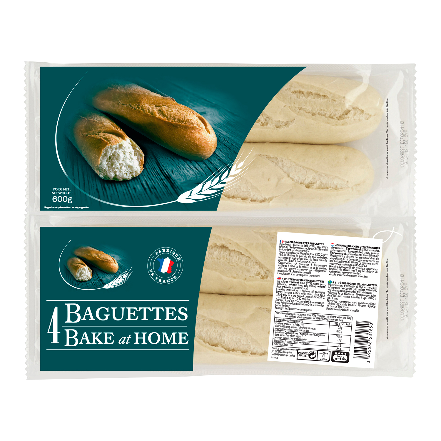 Pour les baguettes rien a dire. Mais pour séparer les 2 baguettes. Pas facile au ciseaux, car on fini toujours par ouvrir un côté et laisser l'air penetrer, ce qui oblige à consommer rapidement le pain. Prédécoupé en pointillé serait judicieux