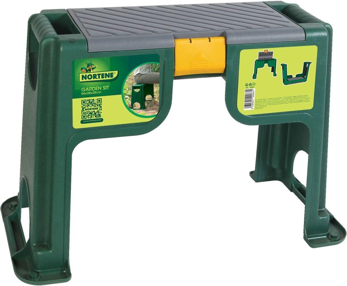 Siège de jardinage réversible siège/agenouilloir, avec coussin et petit coffre de rangement.Coussin en EVADimensions (cm) : 0,56 x 0,38 x 0,28Coloris : Vert