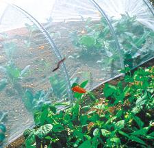 Filet anti-insectes en polyamide tissé 180µ,. Maille serrée. Haute résistance mécanique. Dimensions: 2.20 x 10 mètres(Arceaux non inclus réf. 140221, 140251 ou 140301)