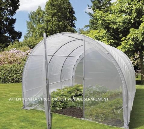 ATTENTION ! LA STRUCTURE EST VENDUE SEPAREMENTL'habillage de la serre Cerea 9m2 est en gaine PE de 120 ce qui offre une transmission lumineuse optimale. Caractéristiques : Couverture en gaine PE de 120 µ, garantie 2 ans.