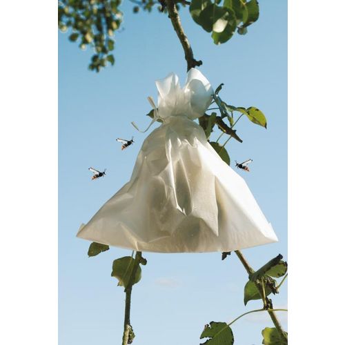 Housses microperforées en papier pour la protection individuelle des fruits contre les insectes. 50 housses avec liens. Dimensions: 20 x 30 cm. Couleur: Blanc