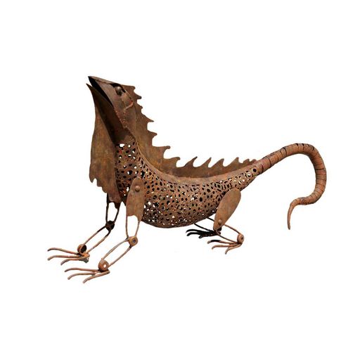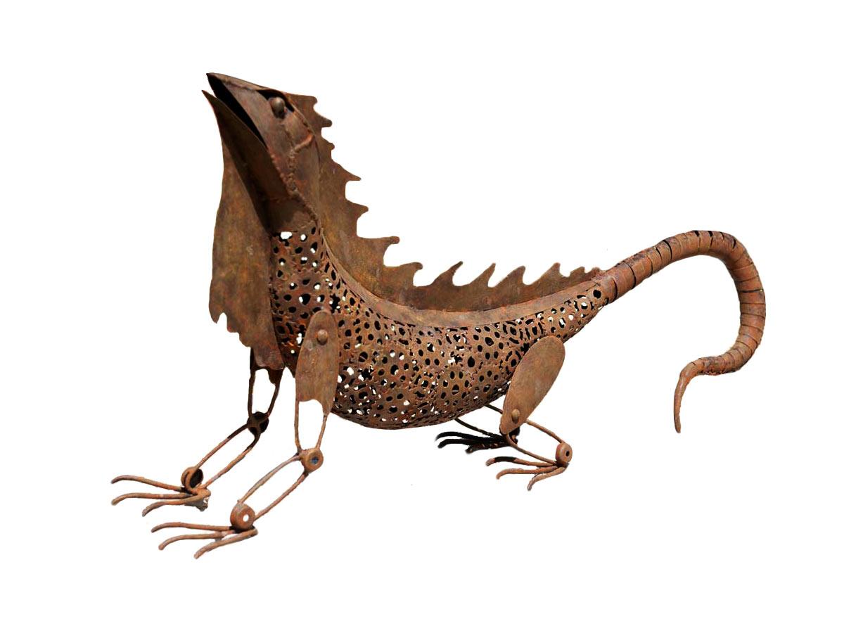Composé de pièces de métal minutieusement assemblées et de couleur rouille, c'est un vrai chef d'oeuvre déco ! Très robuste et original, cet iguane sera superbe dans votre jardin !