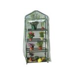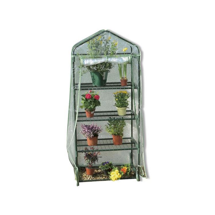 La serre de jardin en plastique présente une structure en acier époxy vert et une couverture en PVC transparent de haute qualité. Son ouverture transparente à double zip assure un accès facile à l'intérieur de la serre. Avec ses 4 étagères, elle offre un espace de rangement pratique pour vos plantes en pot. Les dimensions de cette mini-serre sont les suivantes : Largeur : 70 cm, Profondeur : 50 cm, Hauteur : 1,58 m, Poids : 5,9 kg, Surface : 0,35 m².