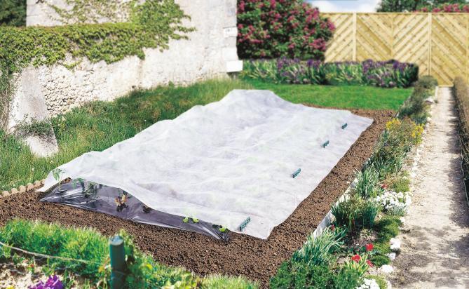 Voile de croissance, non tissé perméable à l'eau et à l'air. 17 grammes au m2. Pour la protection des semis. Dimensions: 2 x 5 mètres.