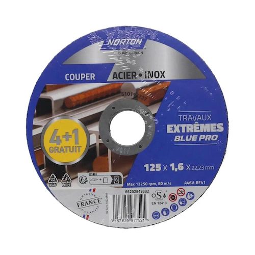 Lot de 4+1 disques acier/inox NORTON 125x1,6