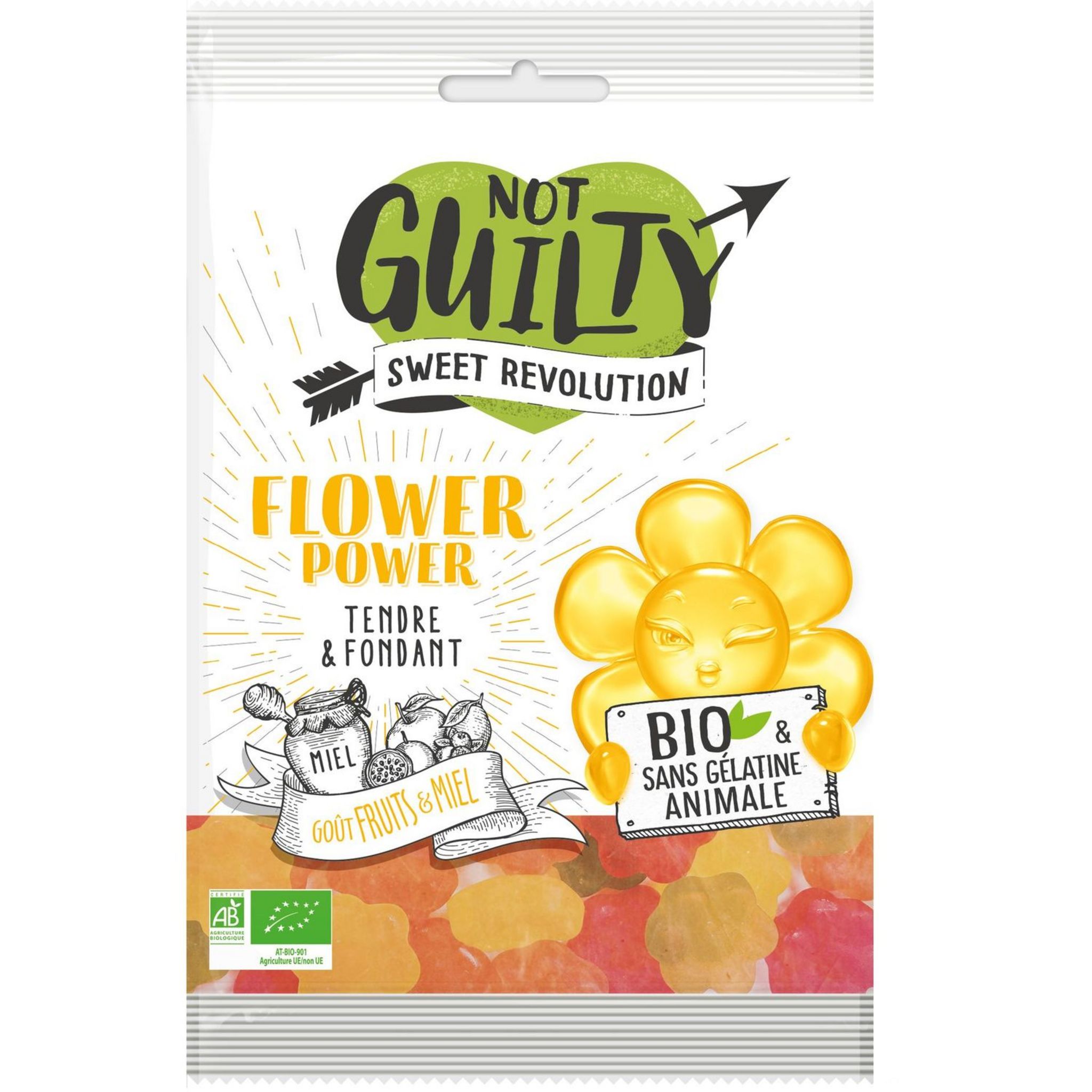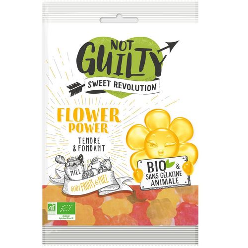 Découvrez Flower Power par Not Guilty, un tendre bonbon gélifié en forme de fleurs, bio, sans gélatine animale et sans gluten. Quatre parfums réunis dans un format 100g pour séduire petits et grands: cranberry miel, passion miel, pomme miel et citron miel. Avec ses bonbons à la formulation innovante, Not Guilty crée la "Sweet Révolution" et réinvente la notion de gourmandise!