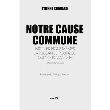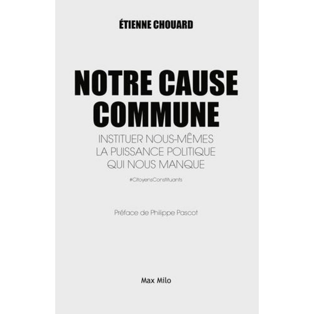 Militant du Référendum d'initiative Citoyenne (RIC) depuis 13 ans, Etienne Chaouard s'est imposé comme une référence des Gilets Jaunes. Ce professeur d'économie et de gestion est un des chantres de la démocratie directe. Dans ce livre, LA CAUSE COMMUNE, l'auteur développe ses idées principales sur la constitution (les citoyens doivent écrire leur constitution pour instituer eux-mêmes leur puissance politique), les élections (l'élection infantilise les citoyens et porte au pouvoir les pires) et le capitalisme (le capitalisme est la conséquence économique d'une dépossession politique). Dans un style limpide et pédagogique, ce premier livre d'Etienne Chouard est un véritable manifeste pour un citoyen constituant.