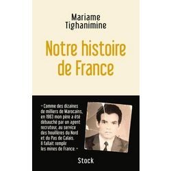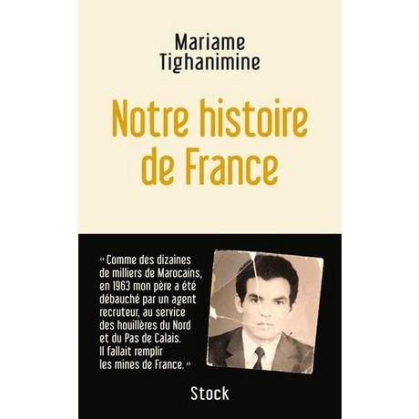 Félix Mora était comme un animal en chasse. Il parlait avec ses yeux et ne faisait qu'observer. Tout y passait : leurs dents, leurs yeux, leurs muscles... Les candidats étaient tous torse nu. Quand il est arrivé au niveau de mon père, Mora n'a rien dit. Il l'a regardé et il l'a tamponné . C'est une histoire française, une histoire d'immigration aussi. Comme des dizaines de milliers de Marocains, en 1963 le père de Mariame Tighanimine a été débauché par un agent recruteur, Félix Mora, au service des houillères du Nord et du Pas de Calais. Il fallait remplir les mines de France. Lahcen Tighanimine est alors envoyé à la mine à Lens. Avec une paie de 250 francs reçue tous les quinze jours en liquide, avec un logement et le charbon gratuit, le quotidien, loin de sa famille et de son pays, est loin d'être facile. Aucune de ces gueules noires, à qui on avait apposé un tampon vert pour rentrer en France comme du bétail, n'imagine rester. Une génération plus tard, dans l'hexagone, leurs descendants sont des centaines de milliers. Avec force et passion Mariame Tighanimine retrace ce pan de l'histoire encore méconnu , cet angle mort du récit national , comme l'a écrit la journaliste Ariane Chemin. Elle raconte aussi la venue de sa mère, par le regroupement familial, le travail à l'usine, à Flins, chez Renault, après la fermeture des mines de charbon, l'installation de la famille à Mantes la jolie... Un destin arrimé à la France, où l'autrice, son frère et ses quatre soeurs sont nés. Notre histoire de France est un récit intime, un portrait familial émouvant, qui, au fil des pages, se transforme en un antidote puissant contre les poisons identitaires de notre époque.