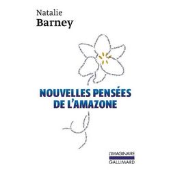 Attendre, attendre en vain ton élan que déçoitUne rivale absurde, et jalouse, me taire ... Avoir besoin d'un être, espèce d'adultèreContre la majesté qui règne obscure en soi. Je ne danserai plus cette amoureuse danseDu couple, menacé par le plus vivant deuilMettre sa volupté par-delà son orgueil, Richesse ou pauvreté, l'humaine dépendance ? La vie des amoureuses se passe moins au lit qu'à la fenêtre . Publiées en 1939 au Mercure de France, les Nouvelles pensées de l'Amazone révèlent tout l'esprit de Natalie Barney, poétique et incisif. Ce bréviaire où poussent des fleurs viriles reflète l'expérience hors du commun d'une femme qui cultiva mieux que personne l'art d'aimer, de vivre, et qui continue d'étonner par sa vision originale du monde. Reine des amazones, célèbre par son salon littéraire de la rue Jacob, Barney permet une plus grande visibilité aux amours lesbiennes dans le Paris de la Belle Epoque et de l'entre-deux-guerres. Il serait erroné de ne conserver que l'image de la séductrice quand la lecture de ses écrits suffit à montrer l'acuité de sa pensée.