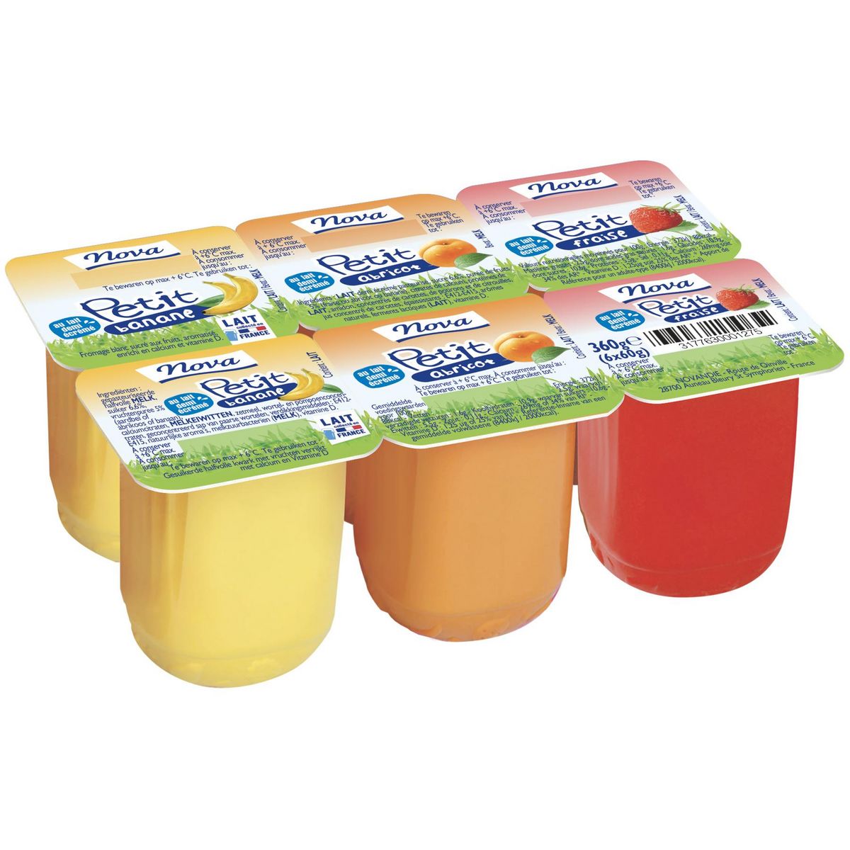 Un fromage blanc aux fruits (5%) enrichi en calcium et vitamine D pour répondre aux besoins spécifiques des enfants. 3 parfums panachés : fraise, banane, abricot. Un format 60G pour s'adapter aux besoins de chaque âge.