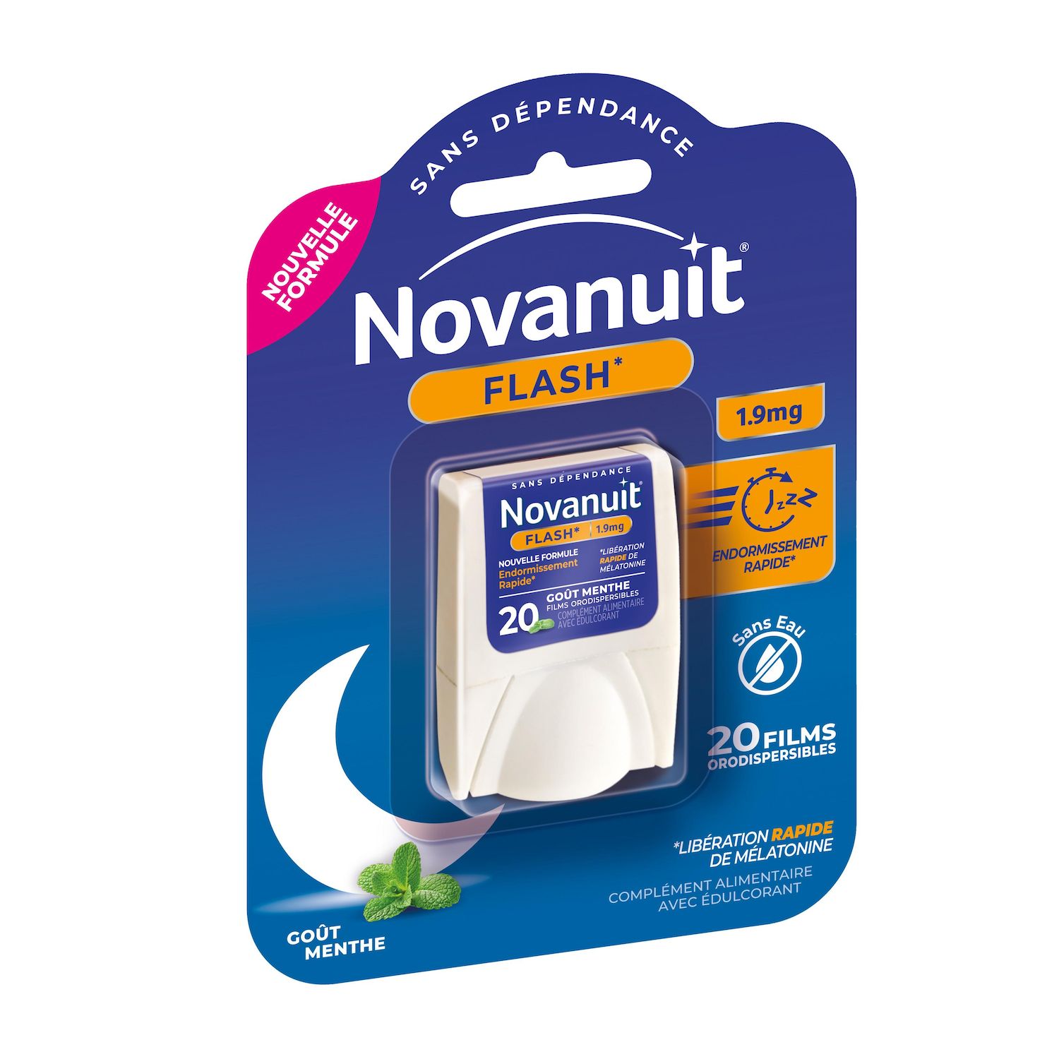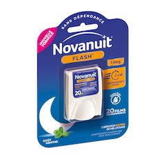 NOVANUIT FLASH Complément alimentaire avec édulcorant réservé à l'adulte avec une libération rapide de mélatonine aide à l'endormissement et à réduire les effets ressentis du décalage.