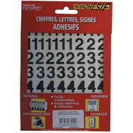 Utilisation intérieur / extérieur. Adhérent sur la plupart des matériaux. Pochette chiffres 30 mm comprenant : 8 (1), 5 (2,3,4,0), 7 (5), 4 (6,7,8,9). Pochette chiffres 40 mm comprenant : 6 (1), 3 (2,6), 2 (3,4,7,8,9), 4 (5,0).
