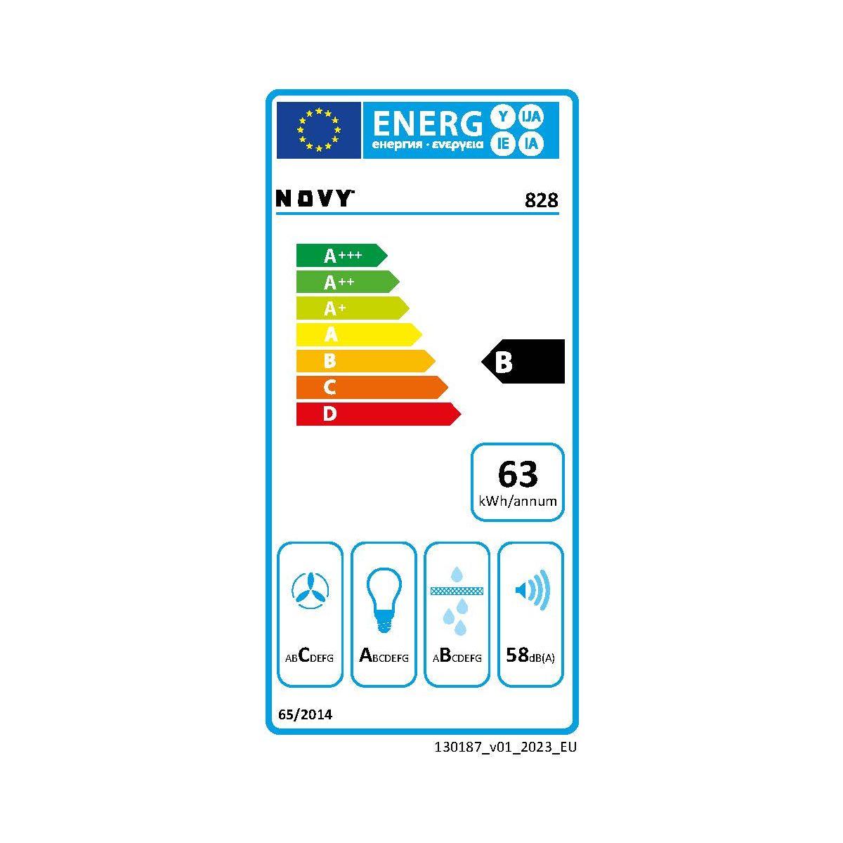 | Consommation d'énergie | Classe d'efficacité énergétique: B, Consommation annuelle d'énergie en kWh: 63 kWh, Classe d'efficacité d'évacuation de la vapeur et fumées: C, Classe d'efficacité de l'éclairage: A, Classe d'efficacité de filtration des graisses: B | |