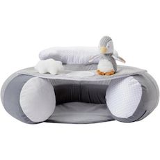 Notre siege de sol aux personnages des Aventures animales aide votre tout-petit a s'asseoir lorsqu'il est pret a explorer son environnement. Ce siege gonflable en peluche ultra-douce est équipé d'un plateau amovible rempli de jouets conçus pour divertir votre bébé. Regardez-le découvrir les formes, les sons et les reflets en se regardant dans le miroir rond, en appuyant sur le nuage qui couine et en jouant avec le pingouin amovible sonore. Idéal pour favoriser le développement des compétences motrices et encourager l'éveil sensoriel, ce siege de soutien est a la fois pratique et confortable. Il se dégonfle entierement et dispose d'une housse amovible lavable en machine, pour une utilisation sans souci. Facile a ranger et tres compact une fois plié, il simplifie également les déplacements avec votre petit explorateur.