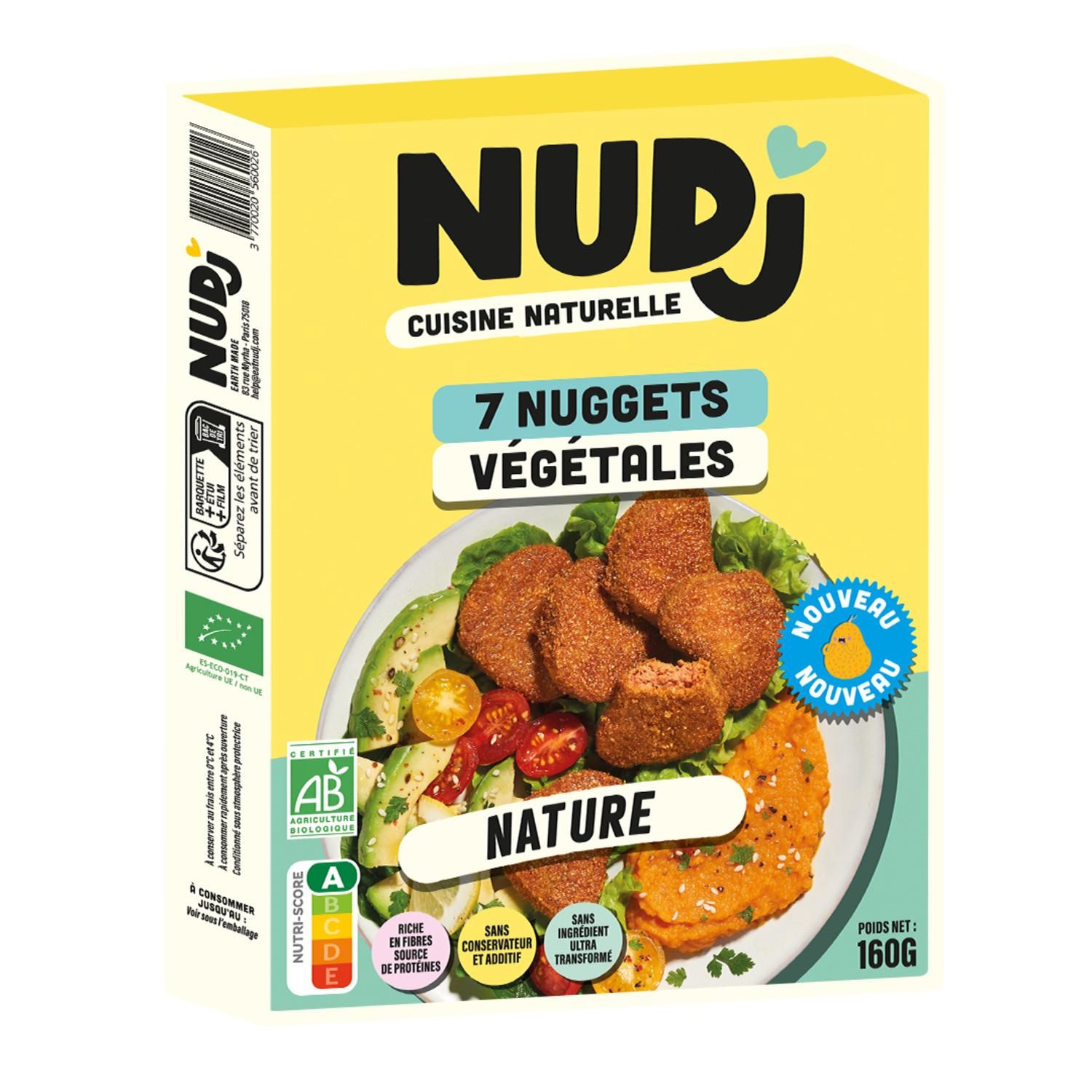Une nuggets végétale composée de vrais ingrédients c'est possible grâce au fruit du jacquier. La nuggets Nudj est composée à plus de 50% de pulpe de jacquier ce qui lui donne une texture fondante, enrobée de chapelure de blé complet pour mettre plus de croustillant dans nos vies et le délicieux goût légèrement fumé du paprika.
