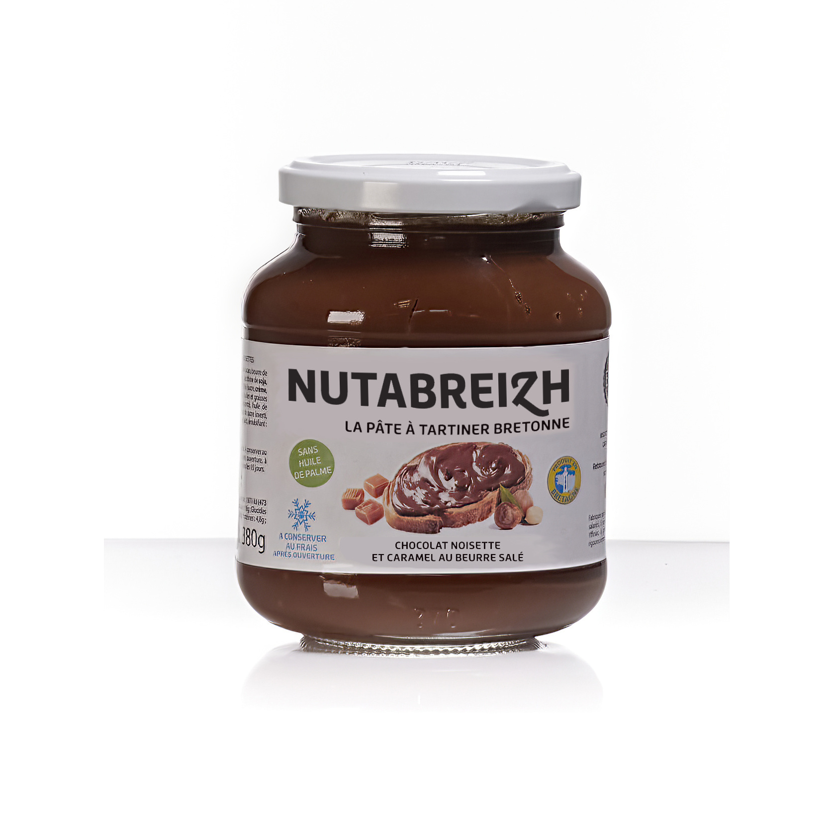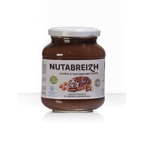 La pâte à tartiner bretonne au Chocolat pur beurre de cacao et aux Noisettes, avec une pointe de Caramel au beurre salé !